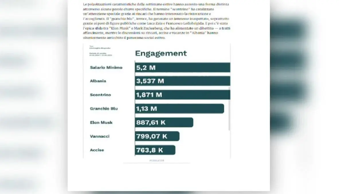 ”Paga minimale” dhe ”Shqipëria” u gjetën si fjalët kyçe më tërheqëse. Shuma totale e reagimeve ka kaluar shifrën 14 milionë, çka nënvizon përfshirjen aktive të komunitetit online. ”Paga minimale” dhe ”Shqipëria” spikasin në këtë garë duke marrë një vëmendje të jashtëzakonshëm prej 61,52% që nga fillimi i muajit.