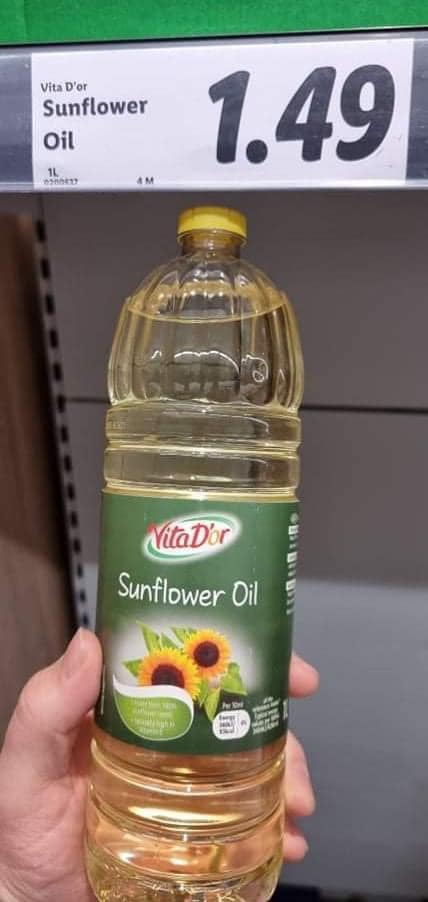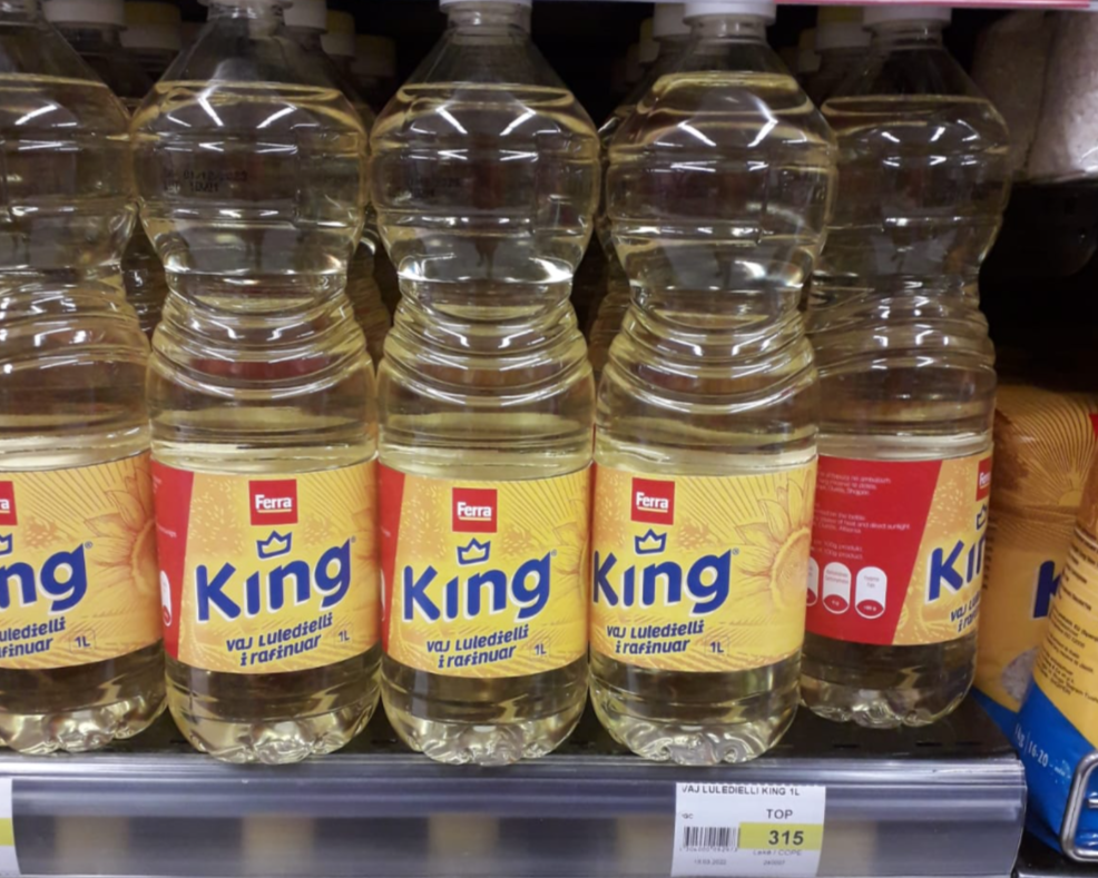 Ndërsa ashtu siç duket në foton e mëposhtme në Shqipëri, një litër vaj luledielli kushton 315 lekë.