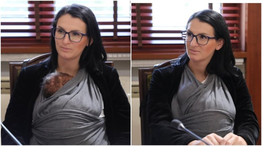 Deputetja e Partisë Socialiste, Ilva Gjuzi u shfaq këtë të martë në mbledhjen e Komisionit për Burimet Natyrore dhe Infrastrukturën së bashku me foshnjën e saj.