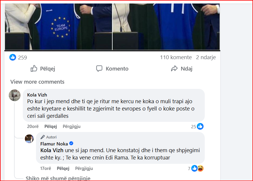 Ndërkohë, Noka është zënë edhe me disa komentues në rrjetet sociale.