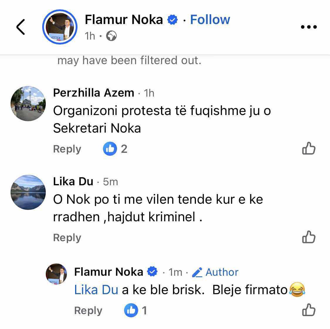 Ndërkohë, Noka është zënë edhe me disa komentues në rrjetet sociale.