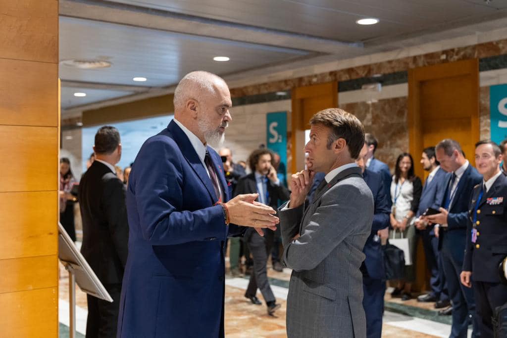 Më herët, Rama u përshëndet edhe me presidenten e Kosovës, Vjosa Osmani, e cila gjithashtu merr pjesë në këtë samit.