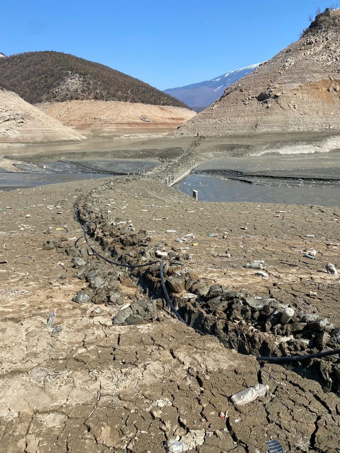 “Liqeni Kukesit dje tek ura mbi Drinin e Bardhe”, shkruan ai.