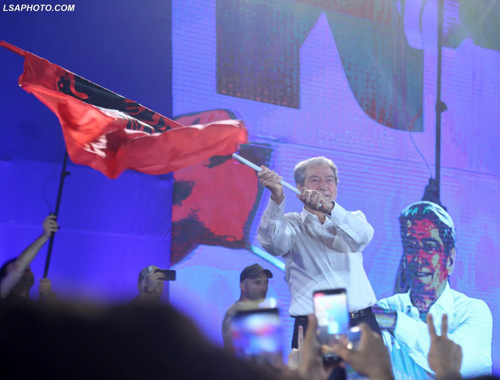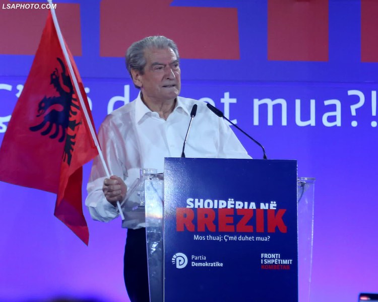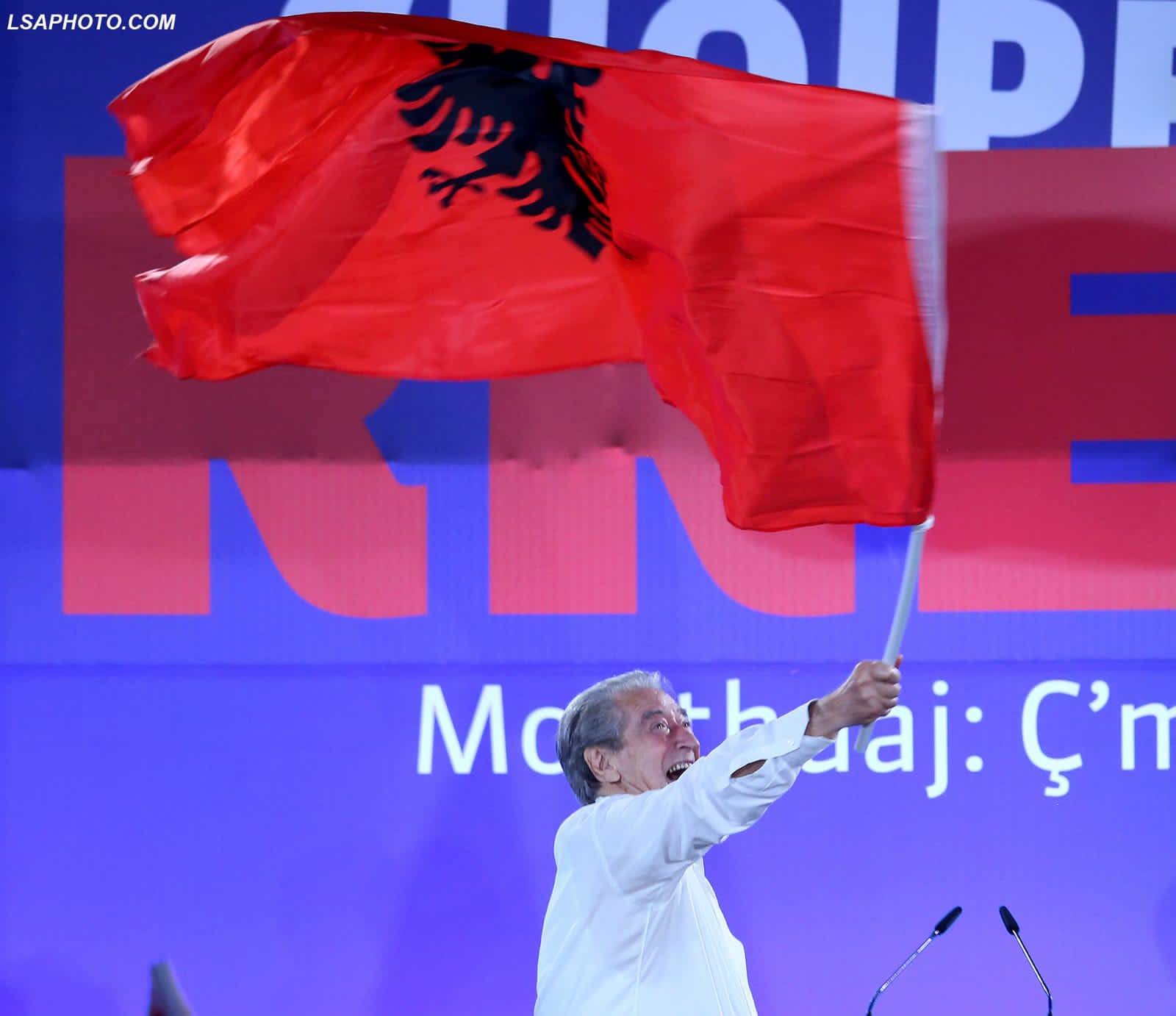 Sali Berisha, në një moment gjatë protestës së djeshme, rrëmbeu flamurin kombëtar dhe duke e mbajtur atë në dorë, u betua për Shqipërinë.