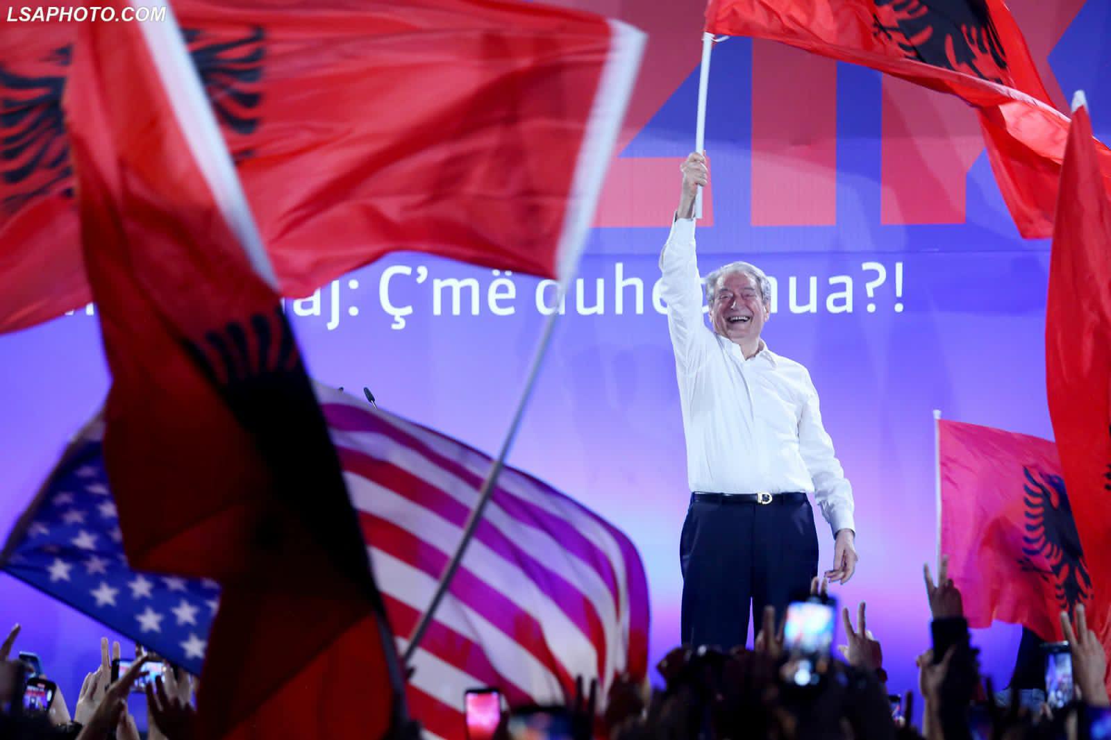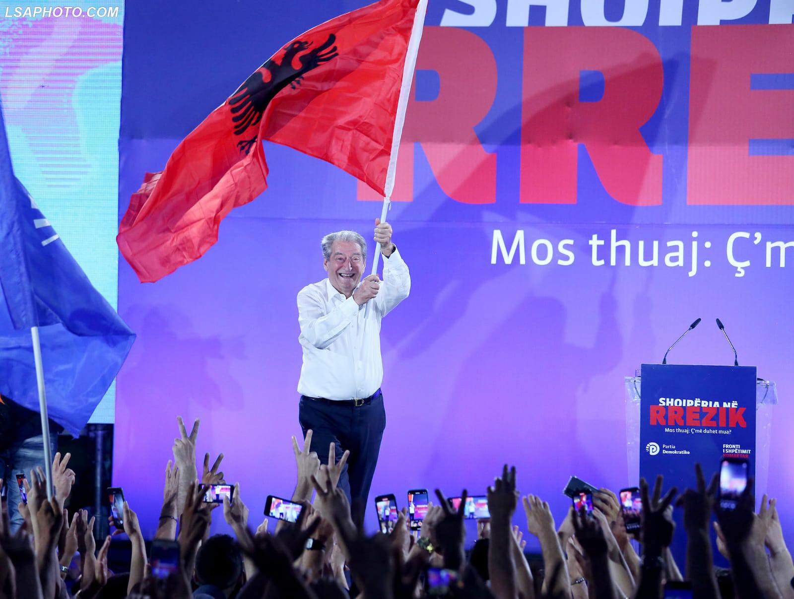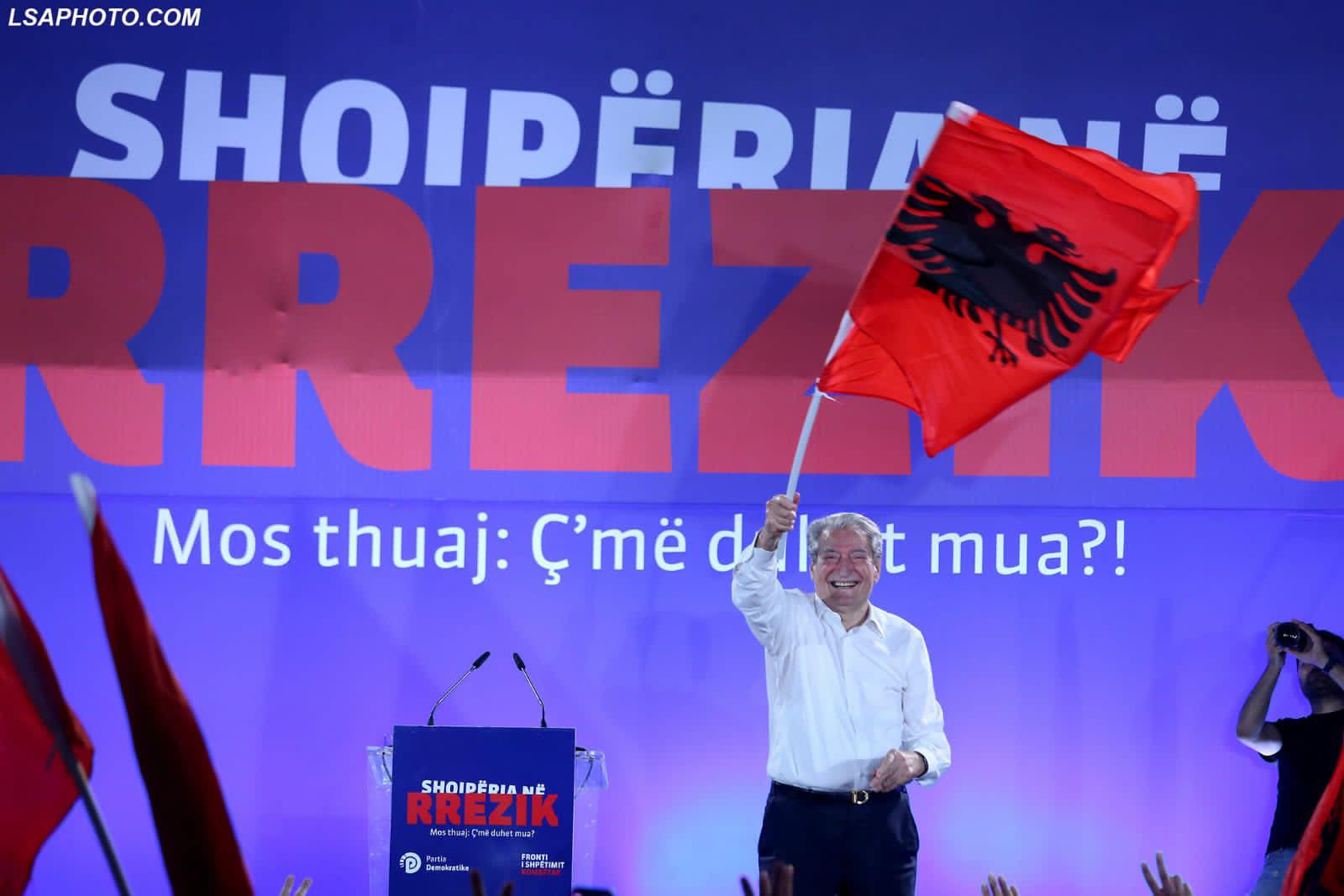 Sali Berisha, në një moment gjatë protestës së djeshme, rrëmbeu flamurin kombëtar dhe duke e mbajtur atë në dorë, u betua për Shqipërinë.