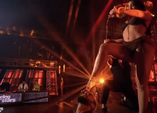 Ajo u shfaq me një gjarpër dhe vetëm me të brendshme, ndërsa e mbylli performancën duke i vendosur takën në kokë balerinit dhe duke i derdhur alkool në fytyrë.