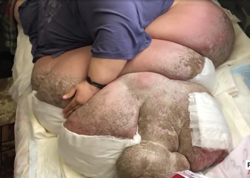 Sa vjen dhe pesha po i rritet frikshëm, ka shkuar 450 kilogramë. Mishrat e këmbëve dhe barkut po i kalben. Vuan nga sëmundja e elefantizmit dhu nuk e çojnë asgjëkundi për ta kuruar.
