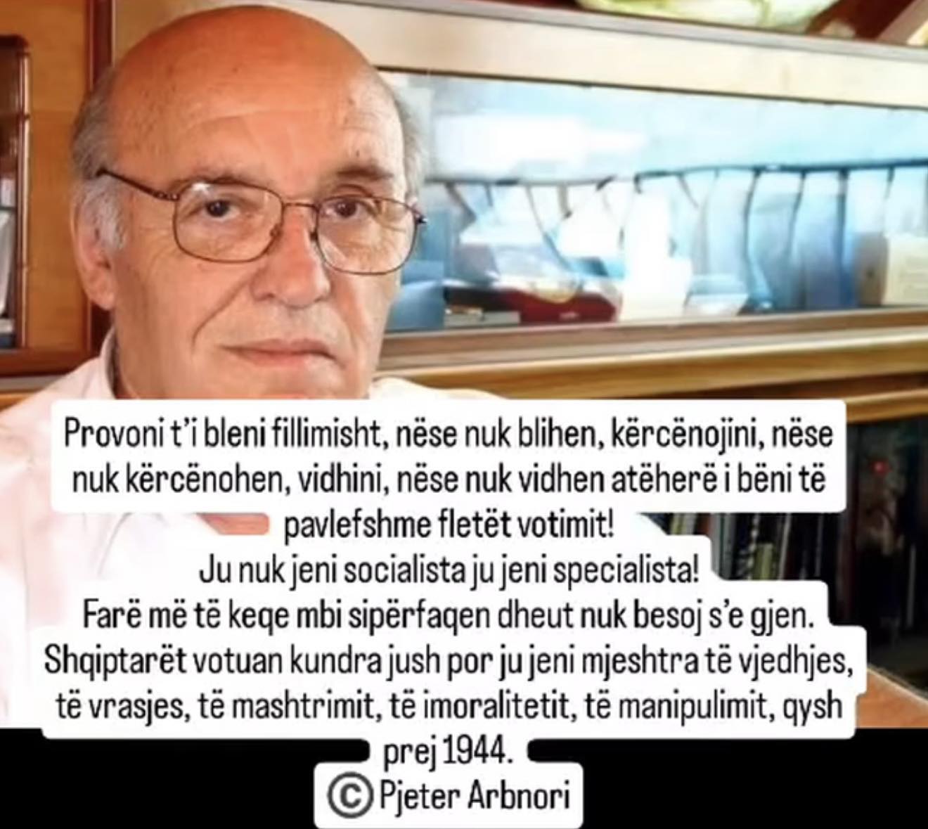 Ai ka postuar një thënie të Pjetër Arbnorit për socialistët, duke thënë se ai bëri burg për idealizëm.